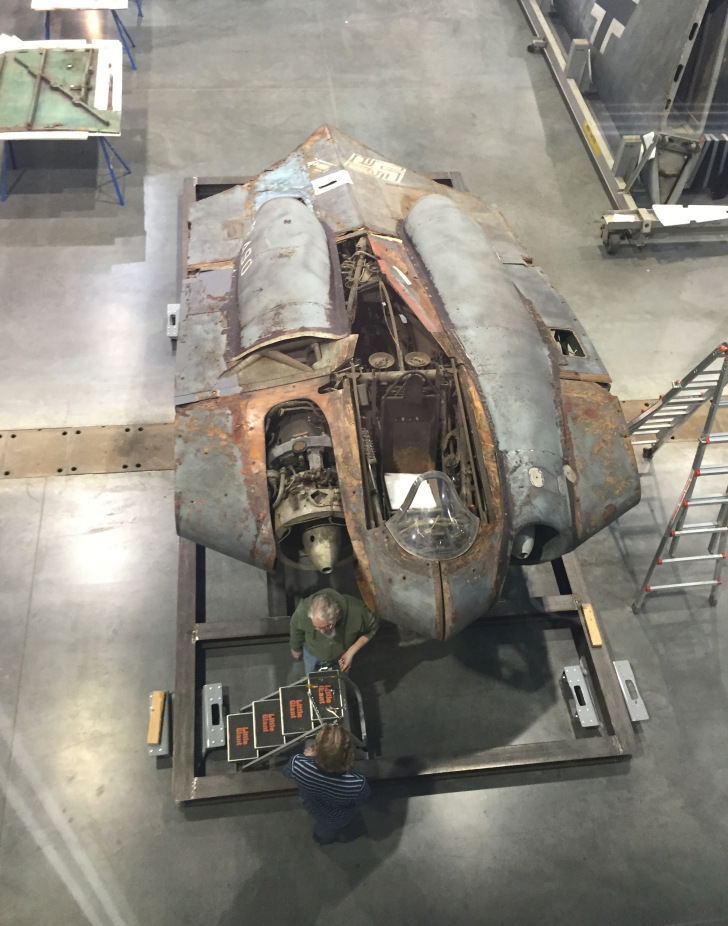 The Firefly had a wingspan of 44 feet 6 inches. To fit inside an aircraft carrier, the wings were folded back leaving a wingspan of only 13 feet 3 inches.